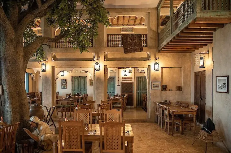- Authentic materials: The walls here are built from raw coral stone, and all furniture and finishes are crafted from dark wood—exactly how homes were constructed in the Emirates decades ago.