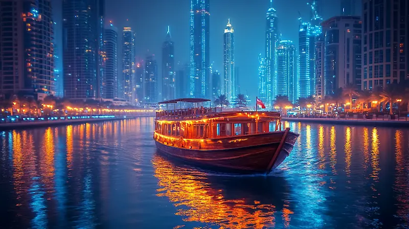 Every evening, Dubai Marina hosts two light shows. The first takes place on the skyscrapers, while the second unfolds on the water, where dozens of cruise boats begin their sparkling parade. But behind this alluring illumination lies a lottery of experiences: you might end up at a lively yet noisy celebration aboard a traditional dhow, or perhaps enjoy a secluded dinner on board an elegant yacht. And the cost of getting it wrong isn’t just money—it could mean a ruined evening. To save you from playing roulette, we’ll break down all the options, comparing them in terms of price, ambiance, and quality.