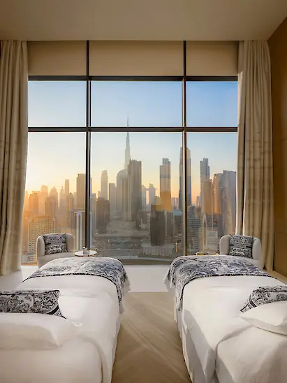 - Relaxation zone: After your ritual, you’ll be guided to a lounge area for rest. Here, with a cup of herbal tea and a panoramic view of Dubai unfolding at your feet, you can extend that sense of serenity.
