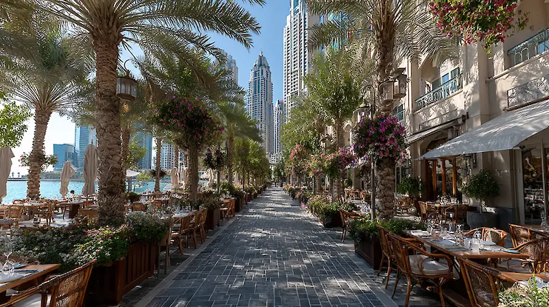 Transport hub: Public transportation is highly developed in the Dubai Marina area. Metro, tram, and water taxi lines intersect here, making it easy to reach other parts of the city.