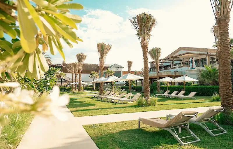 Instead of straight paved paths, you'll find winding trails here, meandering through palm groves, exotic flowers, and gurgling fountains. Landscape designers have created a true green labyrinth, where every turn reveals a new cozy nook. This layout not only provides welcome coolness on a hot day but also creates an amazing sense of privacy— it feels as though you're staying in a secluded villa rather than a large resort complex.