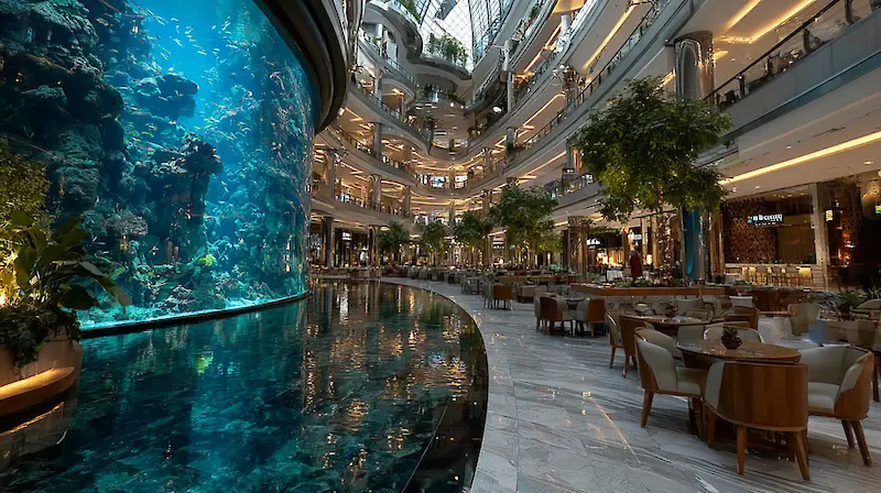 This isn’t just a mall-it’s a palace-museum where shopping is merely an excuse for an extraordinary journey. Imagine sipping coffee beneath the giant dome of the Persian Court, hand-painted with intricate designs, walking past a massive elephant clock in the Indian Court, and snapping a selfie against the backdrop of a fountain with lions, a faithful replica of the fountain from the Alhambra in the Andalusian Court. Each of the six themed pavilions, from Andalusia to China, is a work of art that you could spend hours admiring. Here, the shops take a back seat, giving way to pure visual delight.