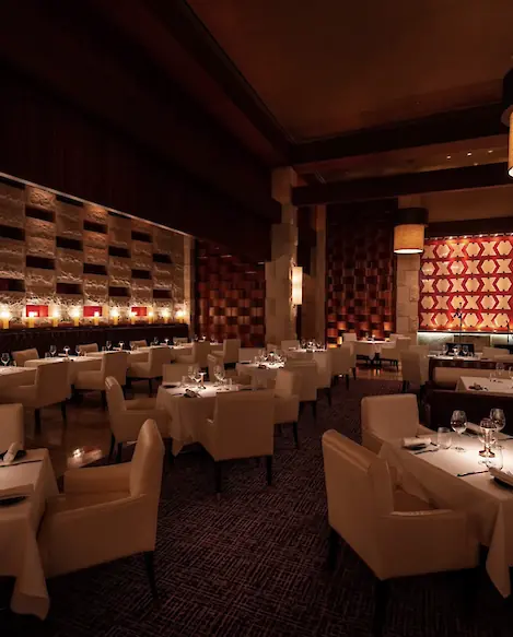 Located in the renowned Atlantis, The Palm hotel, Seafire is the benchmark of the classic American steakhouse. The atmosphere here is calm and distinguished: massive wooden beams, cozy leather sofas, and subdued lighting create the perfect setting for a leisurely dinner or business meetings. The main focus is on expertise: the restaurant prides itself on its selection of premium meats, particularly Australian Black Onyx beef, and its outstanding wine list. For your first visit to Seafire, the Chateaubriand steak for two is an ideal choice—a flawless rendition of a timeless classic.