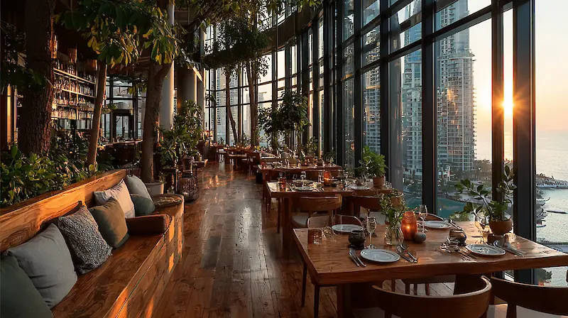 Let’s be honest: in summer in Dubai, when choosing a restaurant, you first look for the word “air conditioning” in the reviews—and only then “cuisine.” All those charming terraces and verandas that are so enticing in winter turn into a branch of hell on earth in July. That’s why our priority is clear: we’re seeking refuge in cool, stylish dining rooms with panoramic windows, where you can enjoy views of the sun-drenched city while staying in absolute comfort.