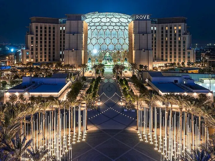 The hotels here match the atmosphere: modern, functional, and perfectly tailored for business travelers and exhibition participants. For example, Holiday Inn Dubai Al-Maktoum Airport offers reliable comfort, while Staybridge Suites Dubai Al-Maktoum focuses on extended stays, providing apartments with fully equipped kitchens. This is especially valuable in an area where there are still relatively few restaurants within walking distance, making the ability to prepare dinner "like at home" a real advantage.