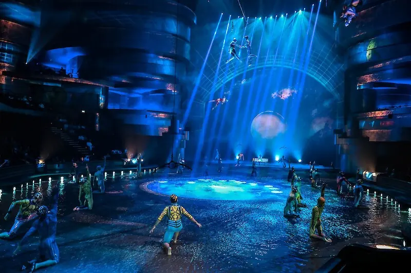 A technological marvel from the legendary director Franco Dragone. On a stage that transforms into a 2.7-million-liter pool in seconds, 65 performers execute incredible acrobatic stunts, including jumps from a height of 25 meters. This hypnotic, mesmerizing spectacle blurs the lines between theater, circus, and aquatic extravaganza.