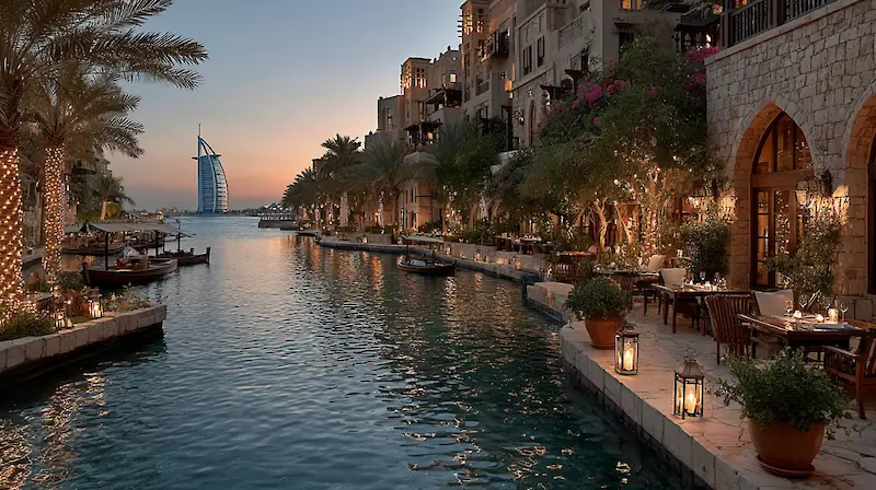 The shops here offer high-quality souvenirs, Arabic perfumes, and works of art designed for impulse purchases. Yes, prices here are noticeably higher than in the dusty streets of Deira, but this markup should be seen not as overpaying for goods, but as a ticket to a magnificent spectacle, where the canals, abra gondolas, and the postcard-perfect view of the sail-shaped hotel serve as the backdrop.