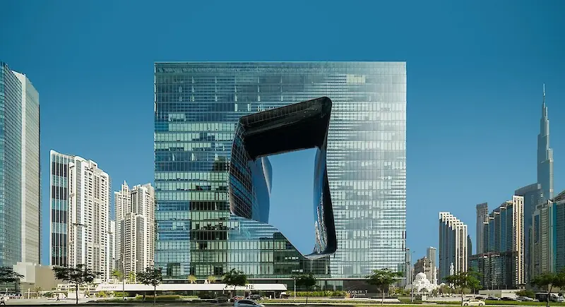 The building housing The Opus hotel is unlike anything else. From the outside, it’s a giant mirrored cube, as if carved straight out of the future. Two towers, originally designed as separate structures, have been merged into a single monolith, at the very center of which pulses an amorphous, flowing "void." During the day, it absorbs sunlight, and at night, it transforms into an illuminated portal to another dimension. This architectural technique creates an incredible effect: it seems as though the solid matter of the cube is melting under the Dubai sun, forming a cosmic rift in the urban landscape.
