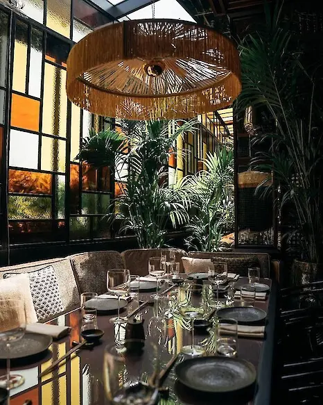 The secret to the best photo: When booking, request a table by the stained-glass panels or in one of the cozy alcoves with Japanese screens. The evening 'amber' lighting here creates perfect conditions for atmospheric photos without flash, which will gather hundreds of likes.