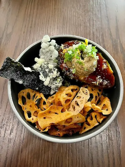 Calling the Wagyu Katsu Sando "just a sandwich" is like referring to the Mona Lisa as "just a portrait." It’s the centerpiece, the main attraction, and the restaurant’s hallmark dish. Imagine the tenderest patty made from Wagyu beef with its perfect pink doneness, encased in a crispy golden breadcrumb coating. All of this is served between two airy slices of milky Japanese shokupan bread and complemented by a delicate layer of tonkatsu sauce. The contrast of textures and the pure, rich flavor of the meat are what make this dish legendary.