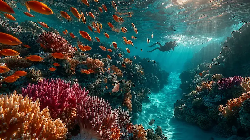 - Дайвинг и сноркелинг: Исследуйте подводный мир у побережья Фуджейры. Здесь, вдали от городской суеты, можно встретить рифовых акул, ярких рыб-попугаев и морских ангелов, скользящих среди коралловых садов.