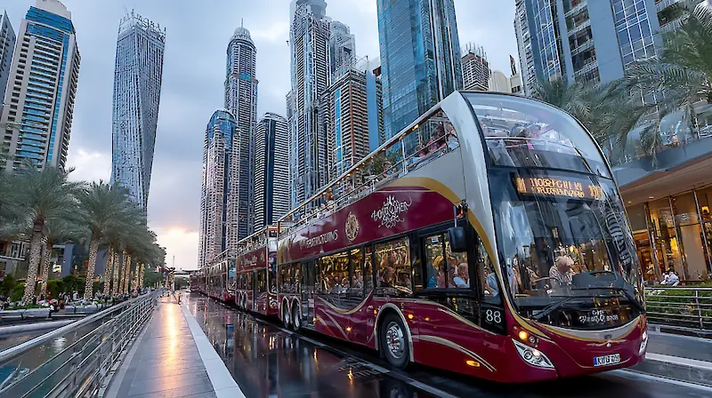 City Sightseeing делит город на логические зоны, предлагая систему из нескольких маршрутов с удобным пересадочным узлом у торгового центра Dubai Mall.