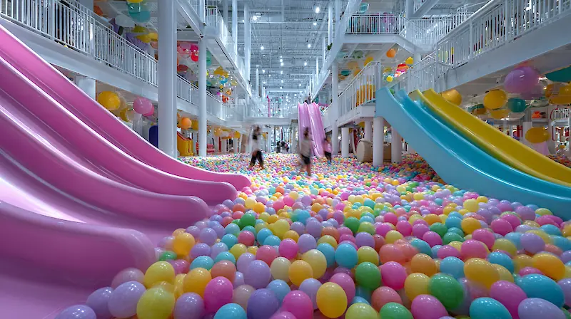 Главная задача таких центров - сделать то, что не под силу родителям в номере отеля или торговом центре: легально и безопасно направить неуемную детскую энергию в мирное русло. Здесь можно и нужно бегать, прыгать, визжать и скатываться с горок в бассейн с шариками, и все это в идеально чистом и прохладном пространстве под присмотром персонала. Основа таких центров - так называемые soft play areas: многоуровневые мягкие лабиринты, батуты и горки.