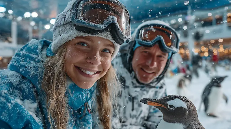 Контраст, который взрывает мозг: только что за окном плавился асфальт, и вот вы уже натягиваете лыжные ботинки и вдыхаете морозный воздух. Это не мираж, а реальность в Ski Dubai, уникальном горнолыжном курорте внутри торгового центра Mall of the Emirates. Здесь можно не только освоить лыжи или сноуборд, но и прокатиться на санках или даже познакомиться с настоящими пингвинами.
