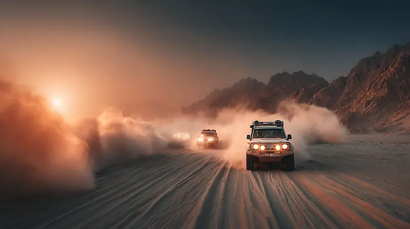 Если вы предпочитаете быть за рулем, а не пассажиром, сафари на багги или квадроциклах — ваш выбор. После короткого инструктажа вы сможете самостоятельно покорять дюны, следуя за гидом. Это чистое удовольствие от скорости, свободы и адреналина, когда вы поднимаете столбы песка и мчитесь по золотым волнам пустыни.