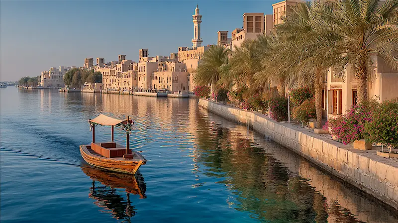 On the other side of the creek, a true oriental bazaar awaits you. The Spice Souk envelops you in a cloud of aromas from cinnamon, cardamom, and frankincense. Nearby, the Gold Souk dazzles with the sparkle of thousands of jewels displayed in the shop windows. Even if you’re not planning to make a purchase, a stroll through these vibrant markets—where bargaining is customary—is a vivid cultural experience.